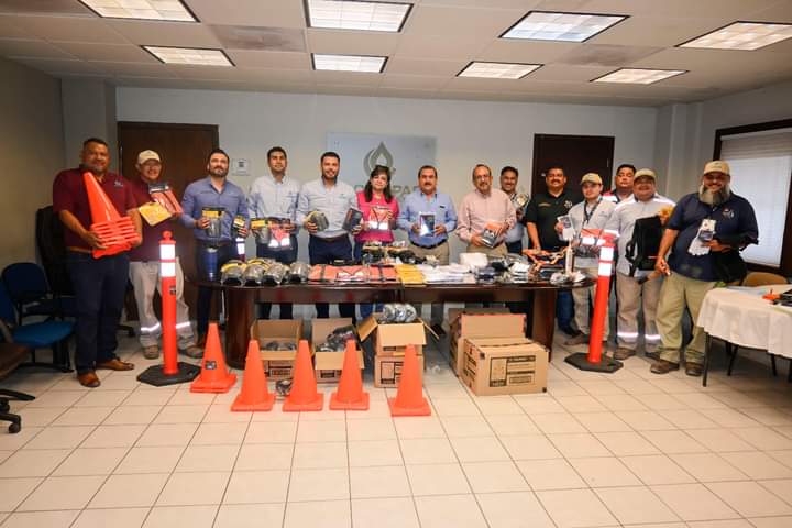 En esta ocasión fueron trabajadores del área de aquatecheros, pozeros y cortes quienes recibieron chalecos, rodilleras, guantes, fajas lumbares, mandiles protectores contra productos químicos, lentes protectores, herramientas, cinturón de seguridad, kit para equipo de sellado de emergencias, conos y trafiseñales.