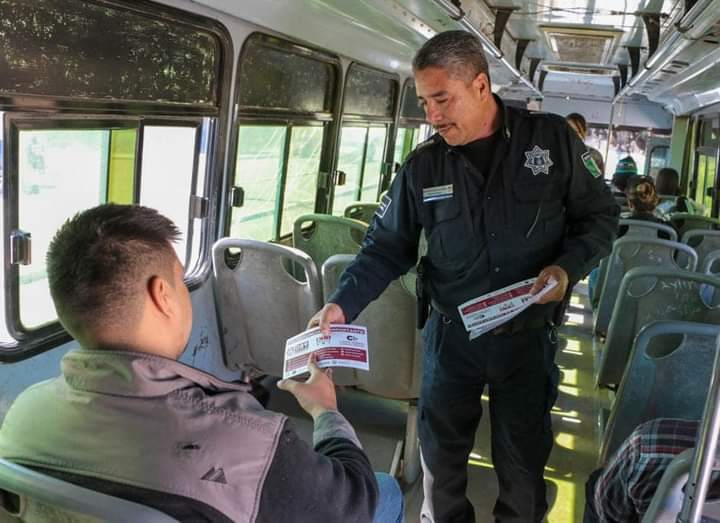 Con el objetivo de disminuir actos delictivos, agentes de la Policía Municipal llevaron a cabo acciones preventivas con las y los usuarios del transporte público en Cajeme.