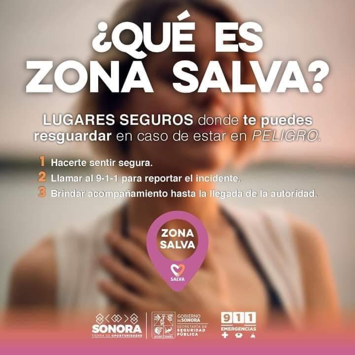 Agregó que la SSP Sonora, también tiene a disposición la aplicación preventiva Mujeres Seguras, herramienta tecnológica con casi 68 mil descargas que cuenta con un botón de alerta enlazado al 9-1-1, así como a la red de confianza preestablecida por la o los usuarios. En esta herramienta tecnológica pueden localizar las Zonas Salva que se encuentren a 750 metros a la redonda de la ubicación actual.
