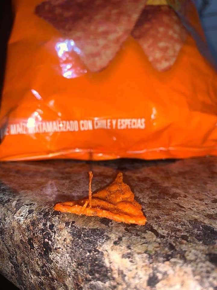 CAJEMENSE NOS ENVÍA UN REPORTE QUE LE SALIÓ ALGO EXTRAÑO EN LOS DORITOS DIABLO, QUE PODRÍA DAR SIMILITUD CON UN INSECTO.