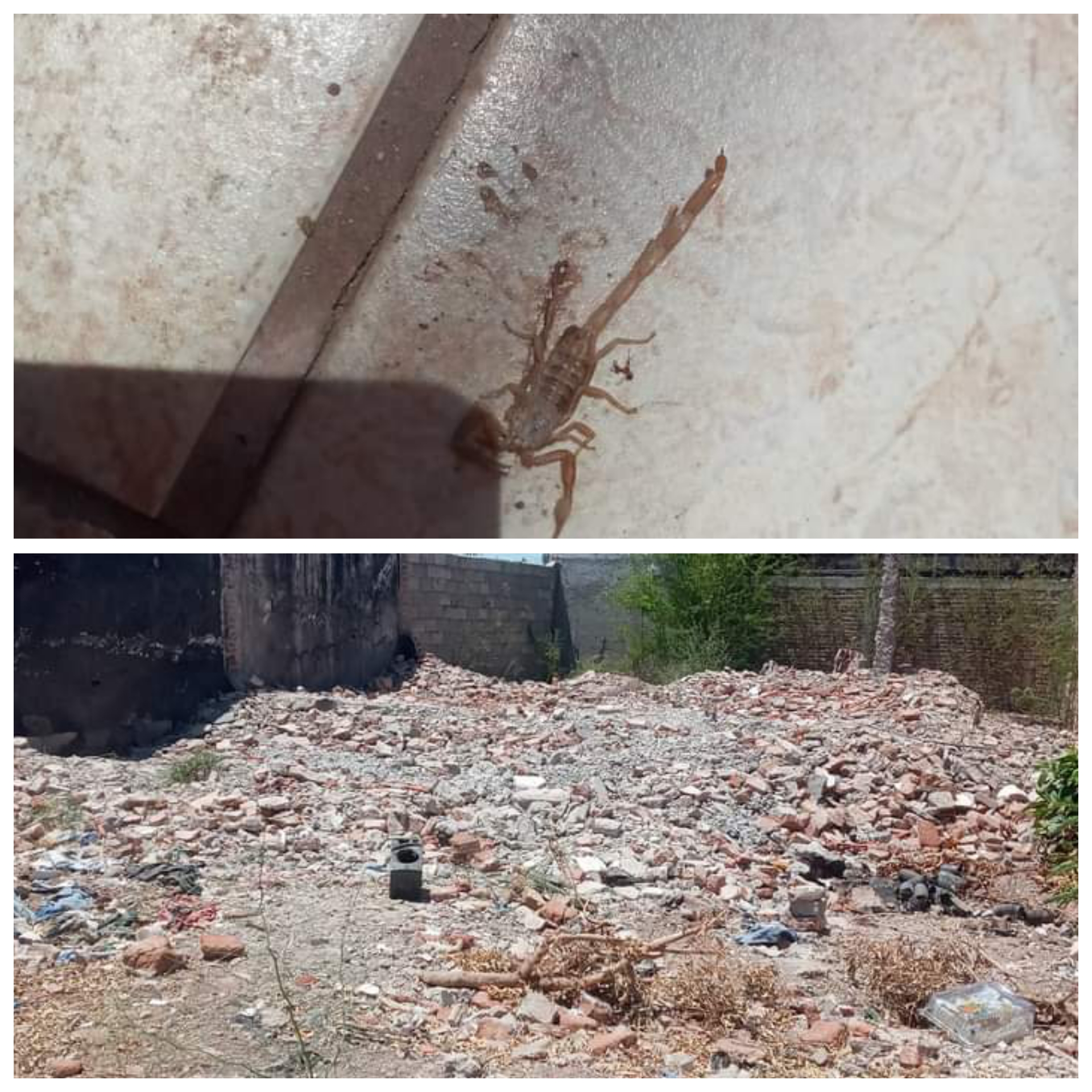 Cajeme,Son-. A través de este medio de comunicación, una vecina de la colonia valle verde en ciudad Obregón reportó que hace unos días atrás captó unos alacranes saliendo de un baldío ubicado sobre calle coral.