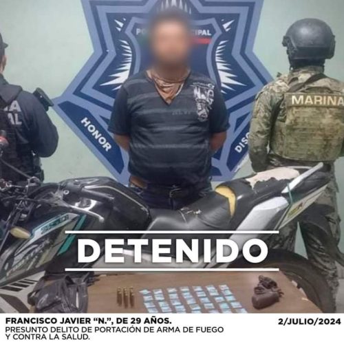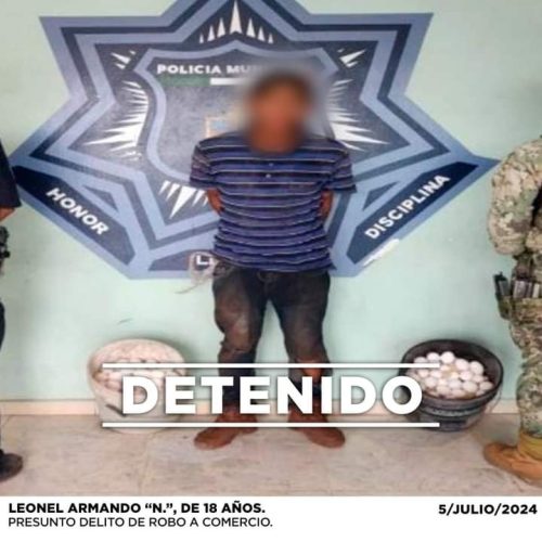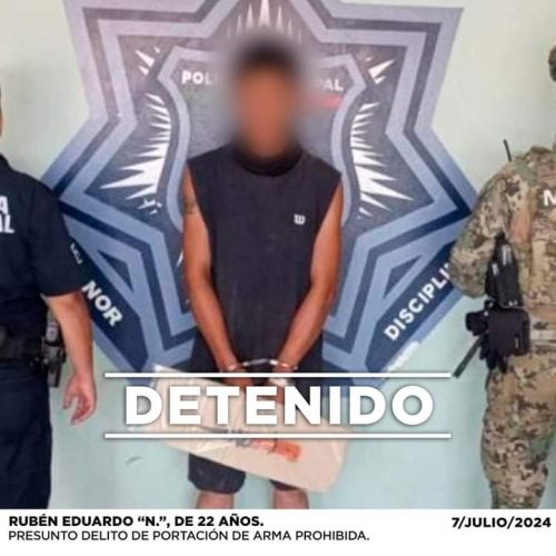 Algunos de los detenidos fueron Jessica “N.”, de 24 años, por el presunto delito de robo a comercio; Francisco Javier “N.”, de 29 años, por el presunto delito de portación de arma de fuego y contra la salud; Leonel Armando “N.”, de 18 años, por el presunto delito de robo a comercio; Manuel de Jesús “N.”, de 28 años, por el presunto delito contra la salud; Santiago “N.”, de 27 años, por el presunto delito de portación de arma de fuego; Jaime Noé “N.”, de 27 años, por el presunto delito de violencia familiar y Rubén Eduardo “N.”, de 22 años, por el presunto delito de portación de arma de fuego.