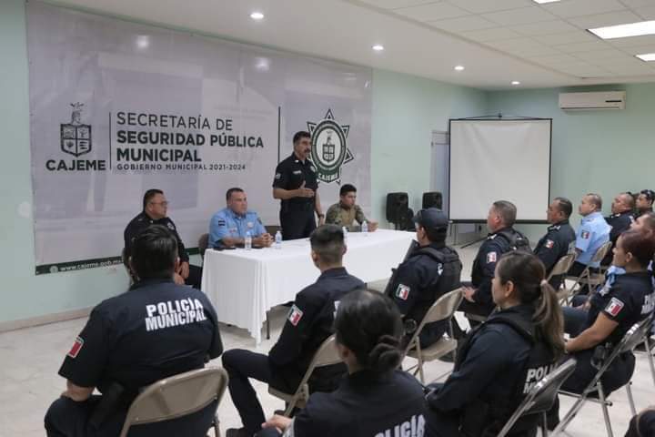 Para alentar a las y los agentes de la Secretaría de Seguridad Pública Municipal a redoblar esfuerzos para mejores resultados hacia las familias cajemenses, el Comisario Claudio Cruz Hernández, sostuvo una reunión con la tropa de la corporación policial.