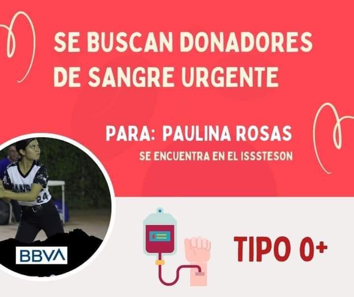 Se necesita sangre tipo O Positivo para la Srita. Paulina Rosas, ella requiere una cirugía con un costo de $16,500 pesos. Además de: Equipo de pelvis, equipo de cirugía y set de placas de reconstrucción curvas para acetabulo perforador de hueso.