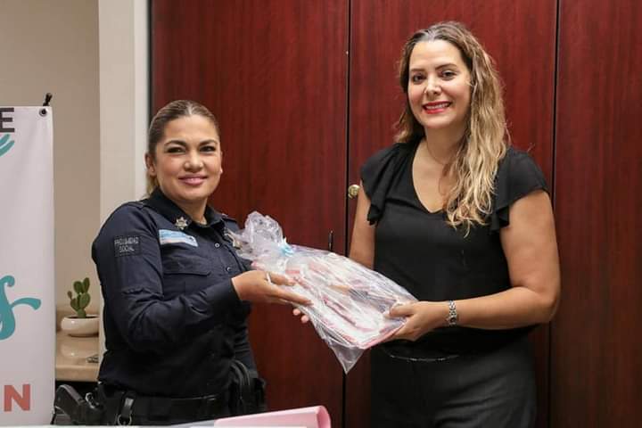 Gabriela Galindo, Coordinadora del Voluntariado de DIF Cajeme, recibió los paquetes donados a manos de elementos de la corporación policial, agradeciendo la voluntad y participación por parte de la Policía Municipal.