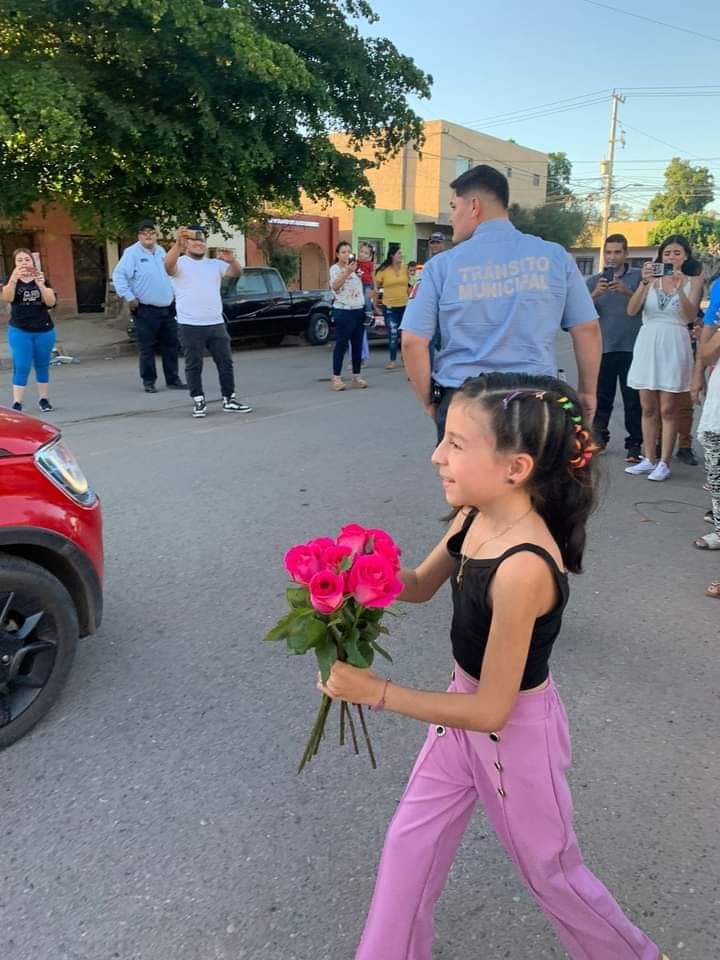 Acompañados de elementos de Seguridad Pública los conductores llegaron hasta el lugar donde la niña celebraba con su familia.