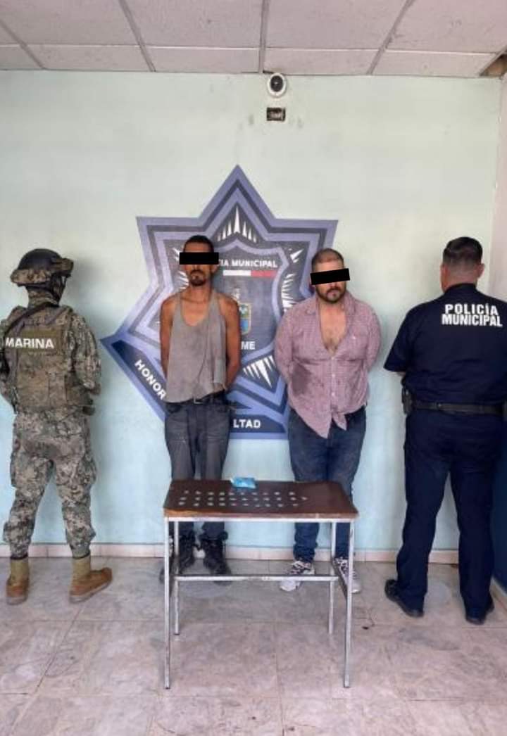Dos personas del sexo masculino fueron capturados a través de un operativo especial efectuado por elementos de la Secretaría de Seguridad Pública Municipal y Marina, donde se logró el aseguramiento de diversos envoltorios de cristal.