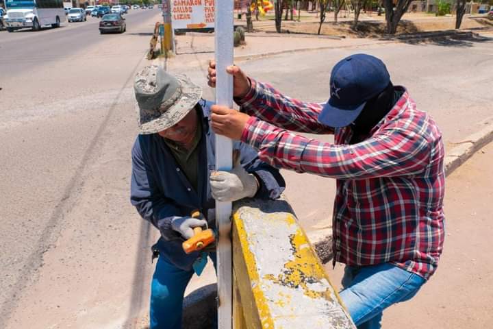 Añadió que, para los trabajos de colocación de los nuevos altos, se utilizó la unidad de grúa con canastilla, la cual fue recientemente entregada por el Alcalde Carlos Javier Lamarque Cano.