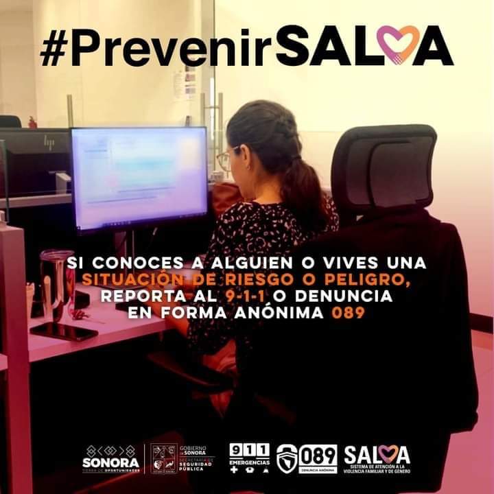 La responsable de Salva en Sonora, hizo un llamado a la ciudadanía para que en caso de tener conocimiento o vivir una situación de violencia, reporten a la línea 9-1-1 o interpongan una denuncia anónima en el 089.
