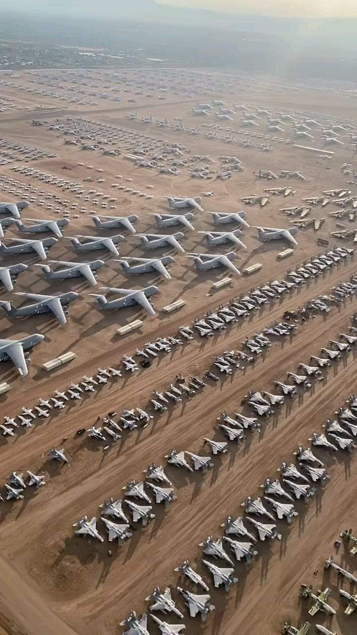 En un sitio de 2.600 acres en la base de la Fuerza Aérea Davis-Monthanos aviones se guardan para almacenarlos con algo de mantenimiento o se les quitan las piezas de sus aviones para reutilizarlos o revenderlos. Las instalaciones de Boneyard generalmente están ubicadas en desiertos, como este en el suroeste de los Estados Unidos, ya que las condiciones secas reducen la corrosión y el suelo duro no necesita ser pavimentado.