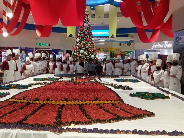 La obra culinaria consistió de 6 mil panes, acomodados en varias mesas de 9×4 metros, el cual se formó la figura de una catrina, asimismo el pan de muerto fue degustado de forma gratuita por la gente que se dió cita a plaza sendero, acompañado de un vaso con champurrado.