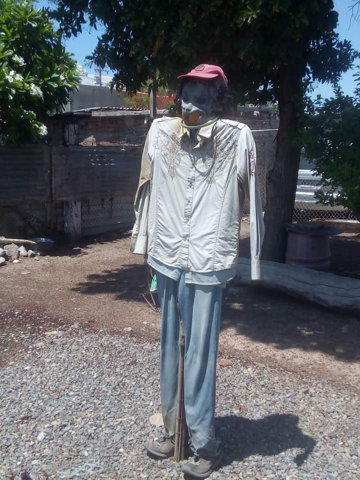 Cajeme,Son-. Se captó a las afueras de un domicilio cercano a las vías del tren en ciudad Obregón, una creativa figura que le daba forma a un hombre moustro.